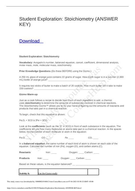 NDV - Download online Explore Learning Stoichiometry Answer Key Kobo BookBoon